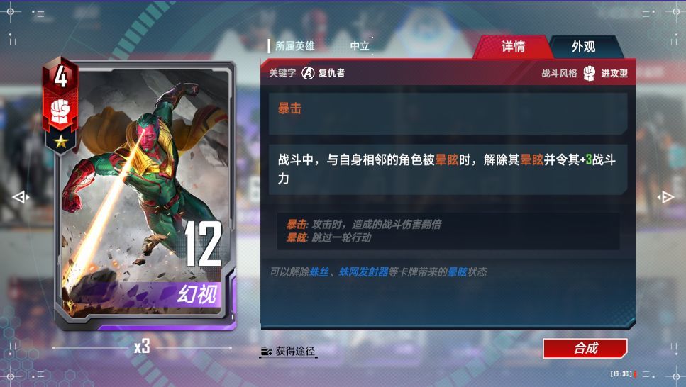 幻视这卡,你可以不用,但是不能不带,如果有对方有眩晕手段就上幻视,一号位放帕克二号位放幻视三号位放蜘蛛机甲