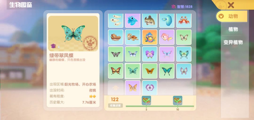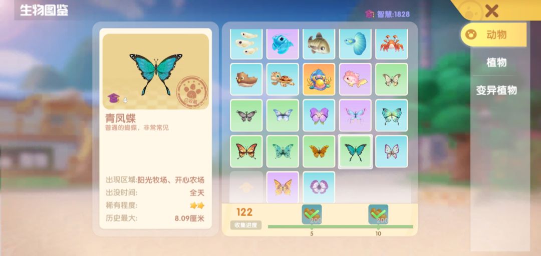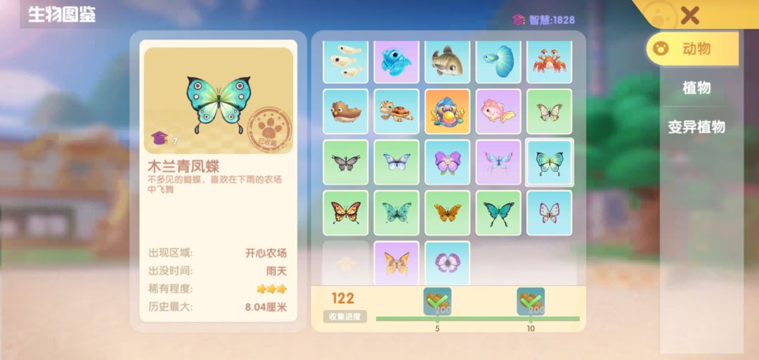 木兰青凤蝶--牧场竞速起点靠中央侧刷蝴蝶点上(雨夜)/农场下(雨白天)