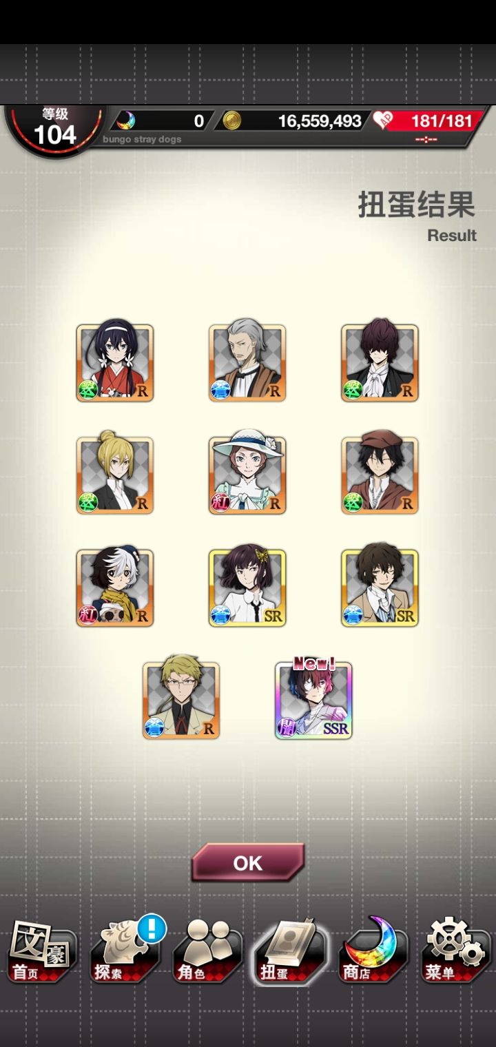 啊啊啊啊啊 官爸我爱你呜呜呜呜,用仅剩的六百石头抽到安吾跟太宰了!!!!还以为抽不到了来着呜呜呜呜