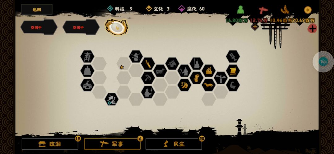 拿下空白和匈奴,进入短暂养老期,军事这边点六个就好(在我看来都很便宜)