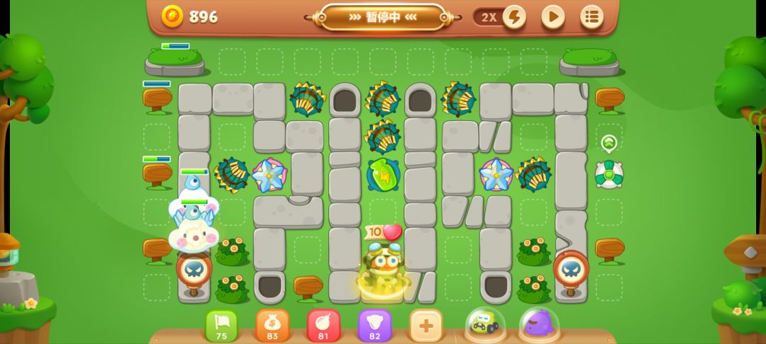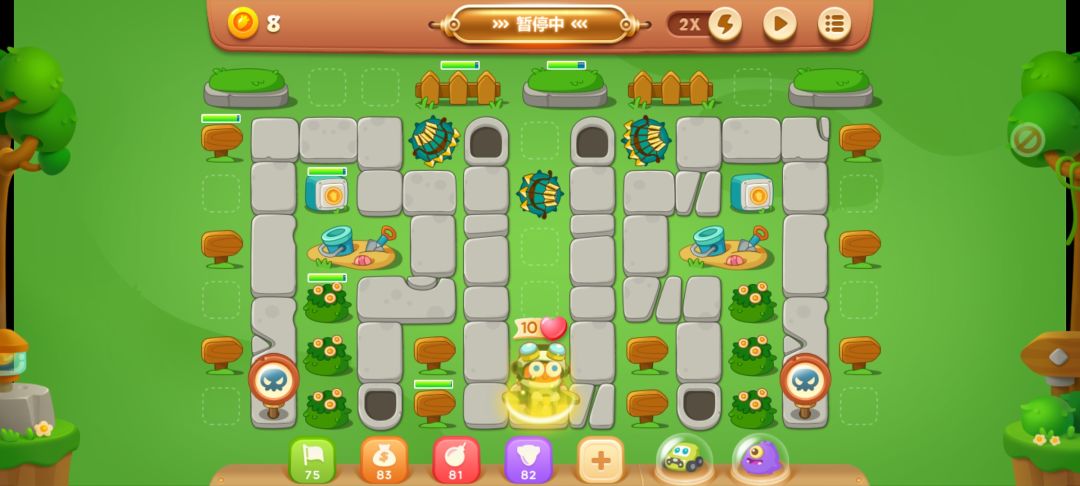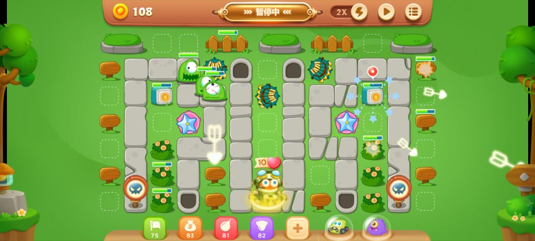 先放两个弓箭,清理中间的障碍物,有怪出来就停一下再打,或者你可以直接用宠物技能把中间烧开。