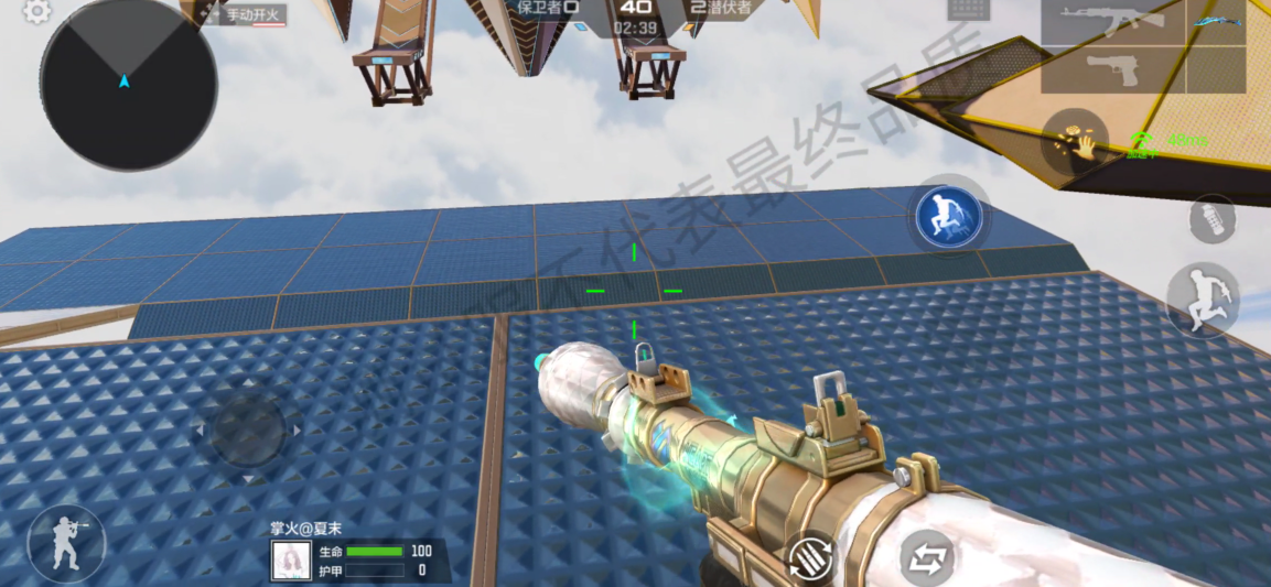 除此之外地图还有“远离战争”的观影区域,这个区域在地图的最边缘,同样可以看到HS战队的影像,这个位置相对比较低,可以适合偷袭对手。