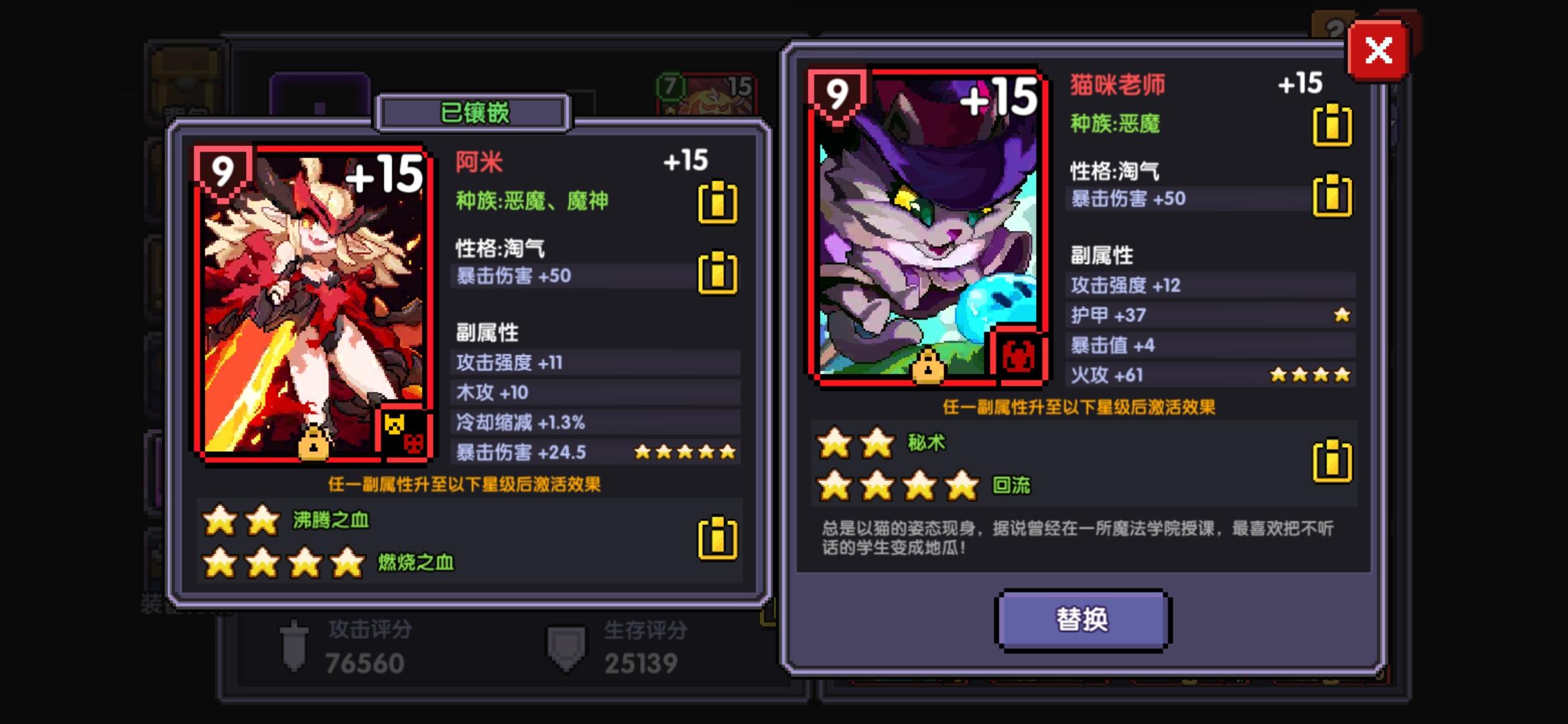 总结:站街2.8攻速 限定武器权杖搭配如意棒的情况下,手搓 猫咪卡略优于阿米卡(实战中猫咪卡伤害提升感很明显)