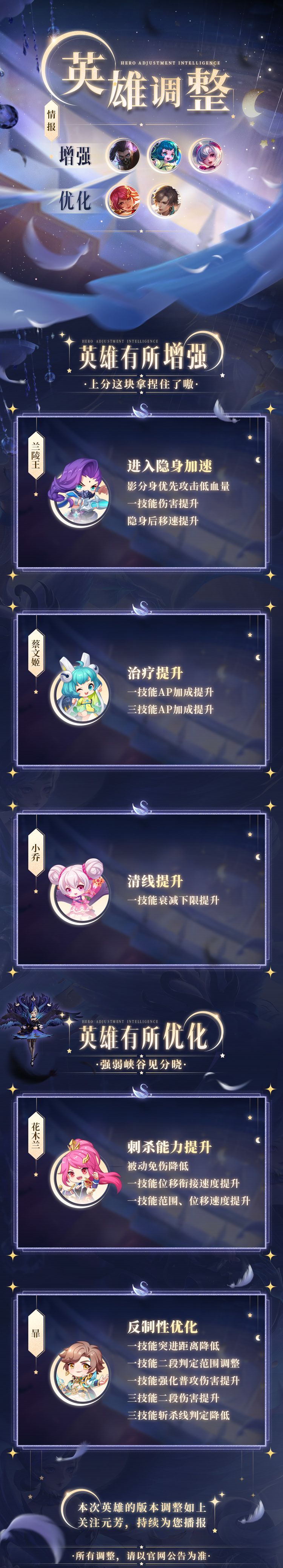 英雄调整情报丨小乔、蔡文姬、兰陵王增强