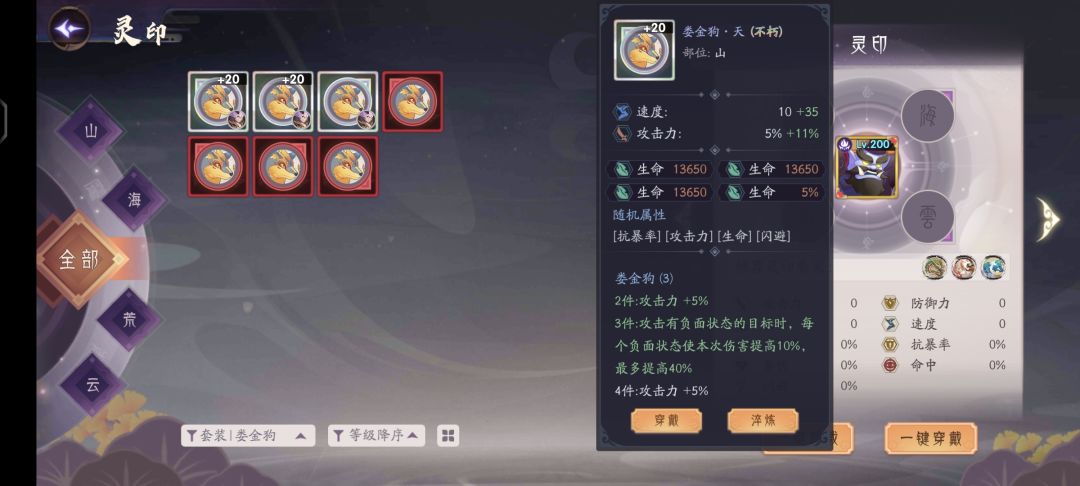 我再补充一下我自己:好多小伙伴吐槽速度不够,速度是一定要通过刷灵印来弥补的。