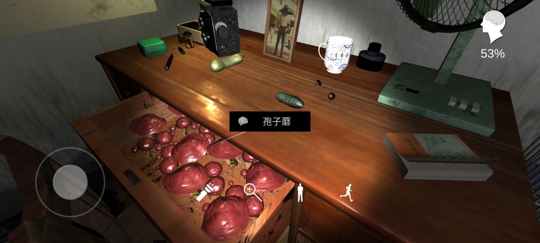 4.王七:正对着抽屉,再次点击孢子蘑,进去王七时刻。