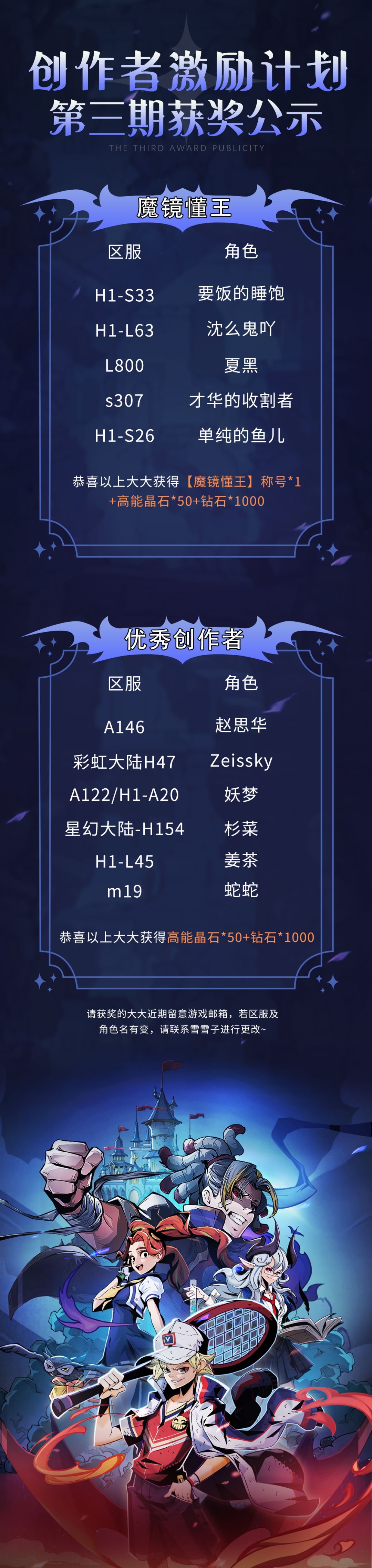 恭喜以下大大们获得【魔镜懂王】以及优秀创作者奖励!!
