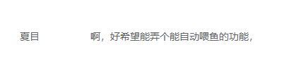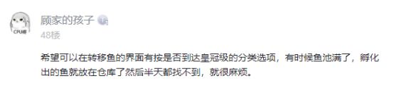 答复:我们游戏的初衷是模拟真实养鱼的过程,这样做的话,就失去了喂鱼的乐趣。