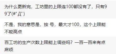 回复:百工坊合成的最大上限调整为999;(6月23日)
