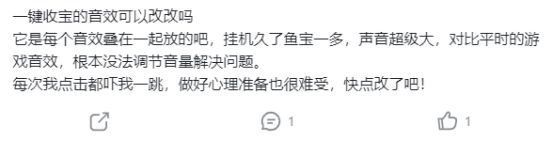 答复:一键收宝音效问题已进行优化处理(2022年3月19日已优化)