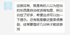 答复:考古玩法已进行相关优化,在考古过程中挖到的奖励,调整为系统自动拾取。(5月9日)