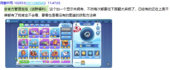馆长大大们好吖,从萌鱼泡泡上线到现在已经有越来越多的新馆长加入啦~许多馆长在体验游戏的同时也会向我们反馈一些游戏的需求和建议,为了给大家带来更好的游戏体验,泡泡都有认真拿小本本记下来了~