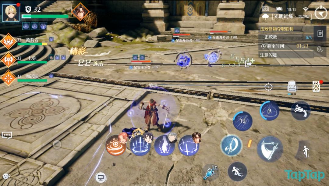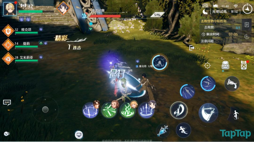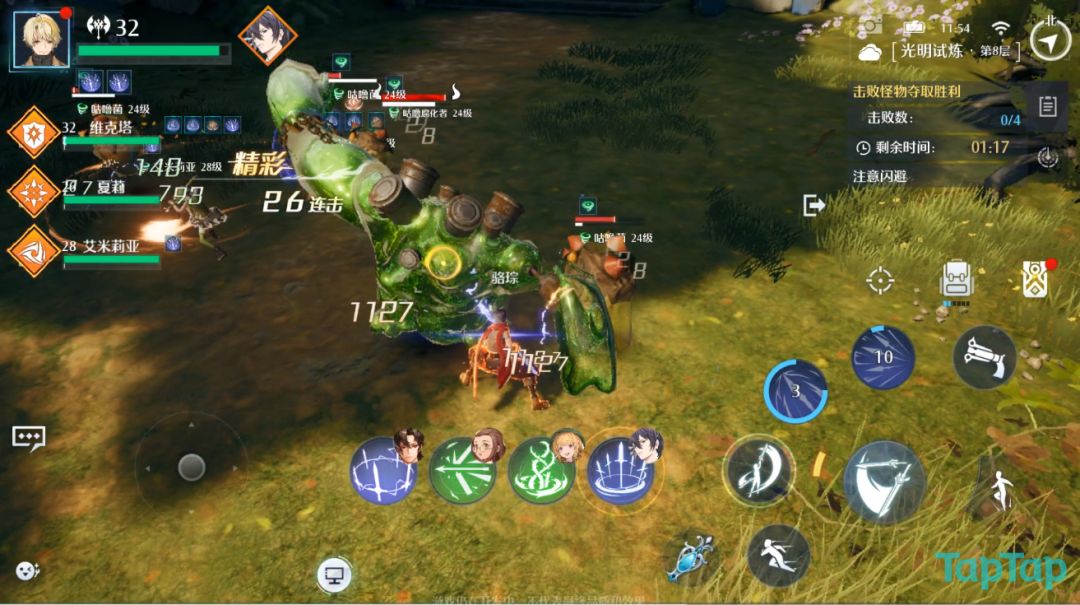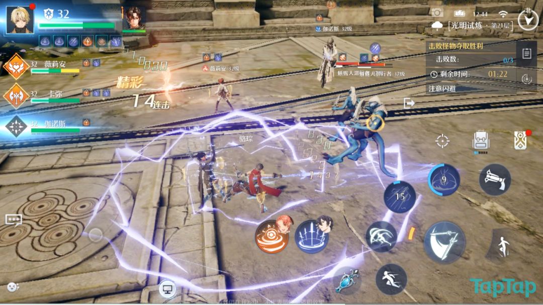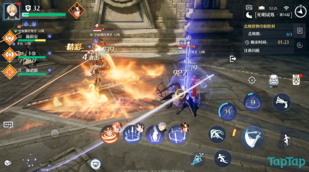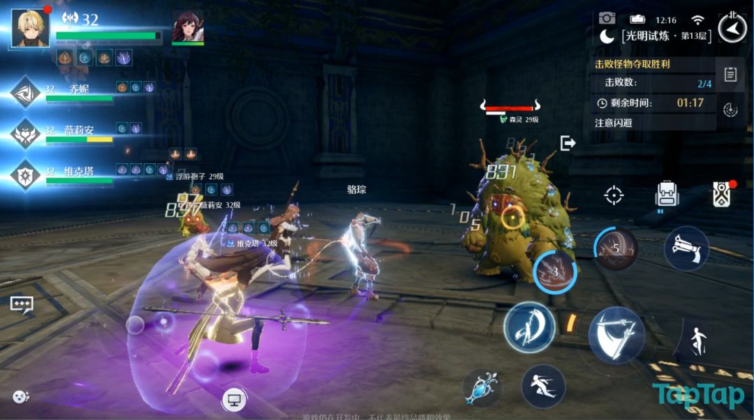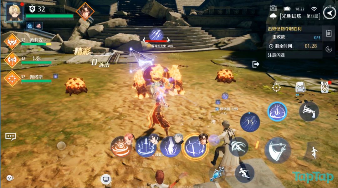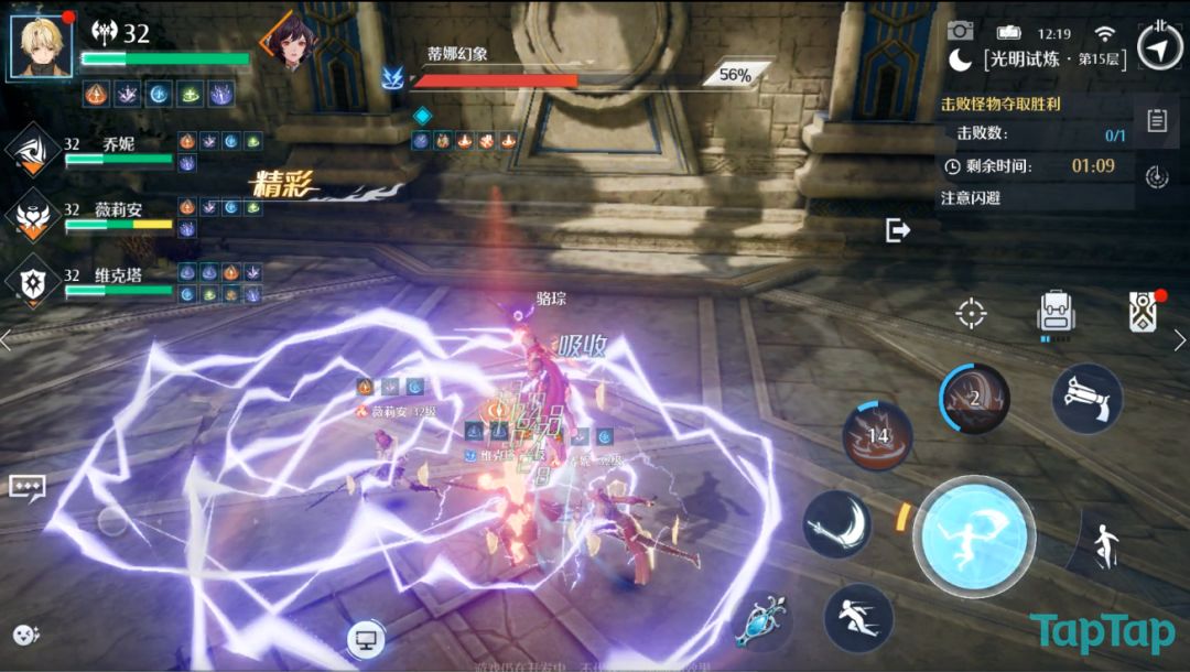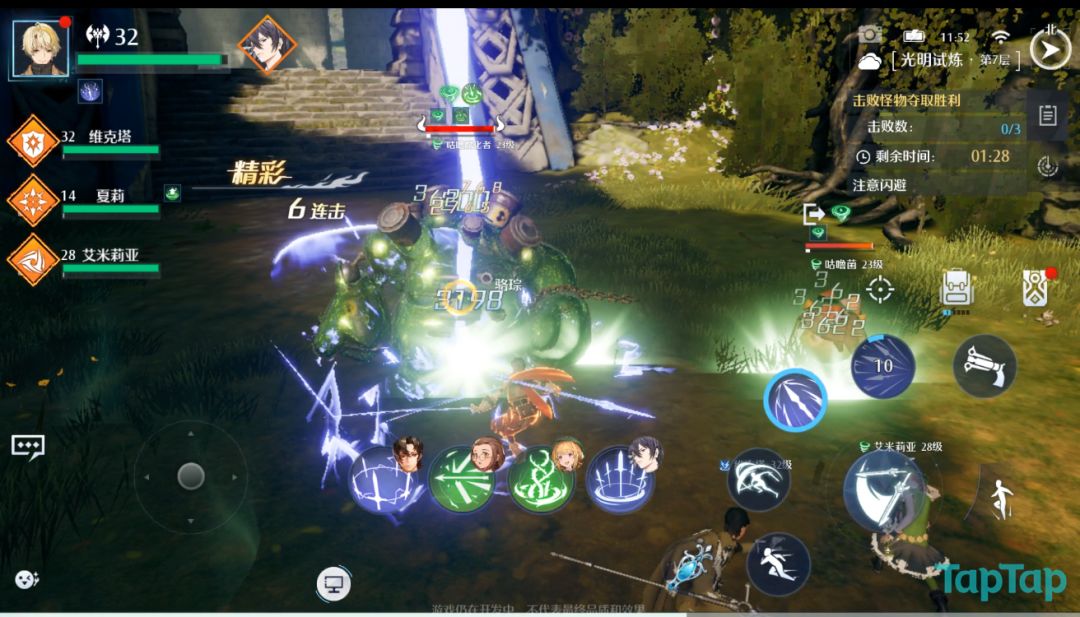 通关技巧:目标始终选择怒涛属性的瑞努克开始砸各种技能,周围两个无属性的小怪直接蹭幻灵技能的AOE即可。