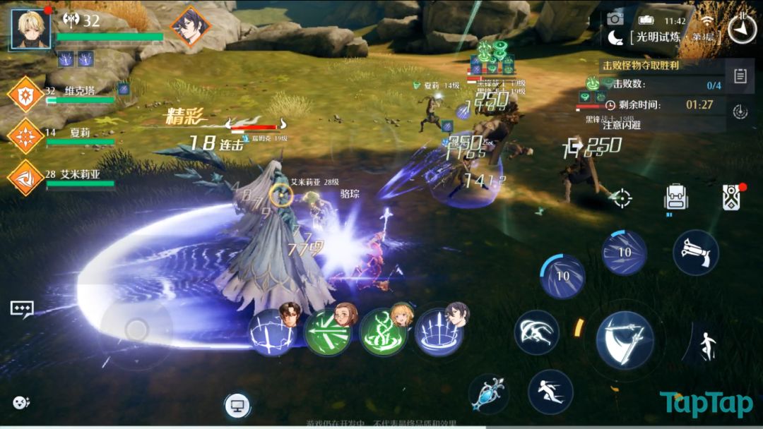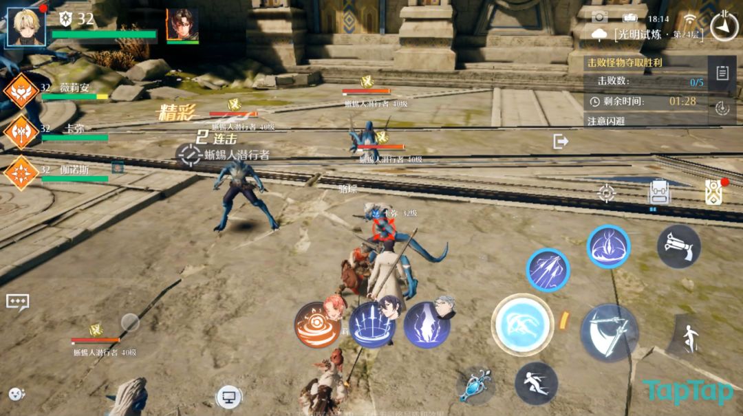通关技巧:优先考虑使用雷霆元素幻灵。四只小怪,中间两只怪是近战,我们上前后会自动靠过来。但是两侧的小怪是远程,可以将主目标放在远程怪身上,这样两个近战怪就会过来吃AOE,打死一侧的远程怪后,再去锁另一侧的,近战怪如果没有死也会跟过去继续吃AOE。