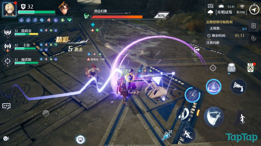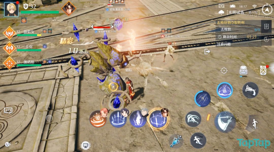 通关技巧:优先选择雷霆属性幻灵上阵。目标选中中间的BOSS放技能,周围两侧的小怪吃AOE伤害。这个BOSS会来回位移,注意用位移技能追击目标,追击到位后再放技能,不然大招刚放完BOSS跑了也不行。