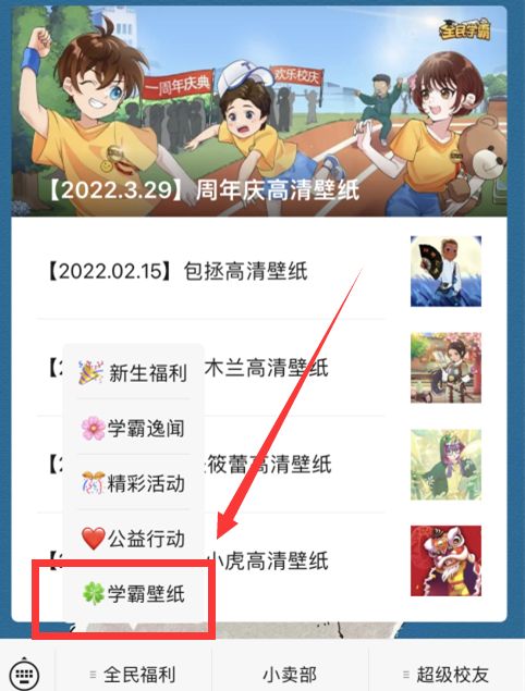 点击底部菜单栏【全民福利】-【学霸壁纸】