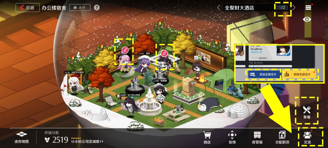 第一是领取住宿员工头上的心心💕。如果好感满了点分配职员,自动入驻,然后等着收下一轮。