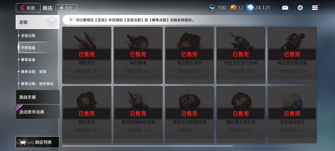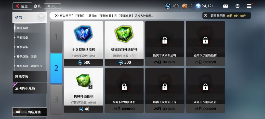 最后那个商店,用分解角色给的代币消费的那个商店,每周刷新的限量的道具都换,还有每月刷新的终身契约书也换。