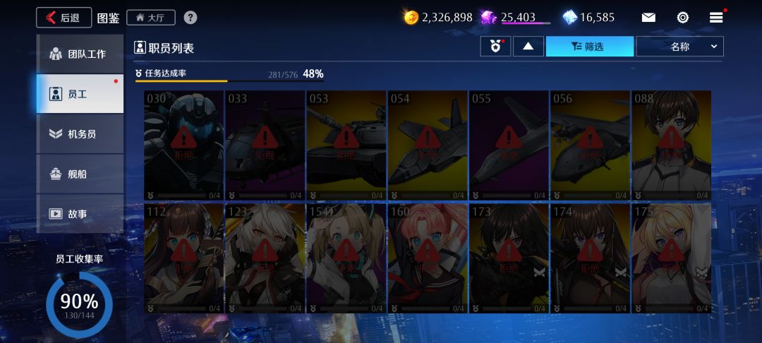 人物基本全收集,没有在抽人物方面氪1分钱。除了一些要刷副本的,集碎片的,再武装的没有,还有老师傅等一周年送。