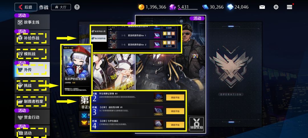 此外还有挑战,每周都不一样。注意下如果出信息本必打满3次,这是获得信息性价比最高的副本。