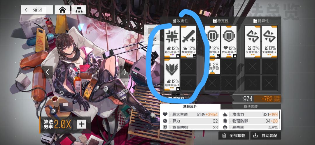综上所述,算法主词条可以吃到算法效率X2的效果,所以萌新配装的时候如果算法少,没有攻略视频或者图片里的推荐算法,那么一定优先保持主词条正确,次要考虑套装正确