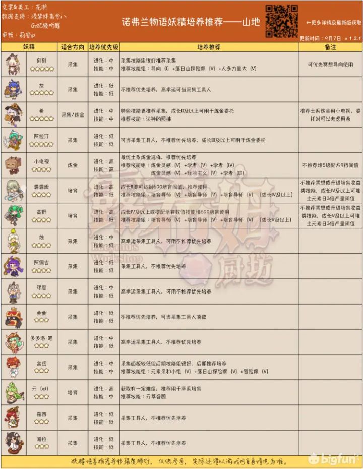 精灵培养推荐(搬运于bigfun wiki攻略组露希姆的厨坊)