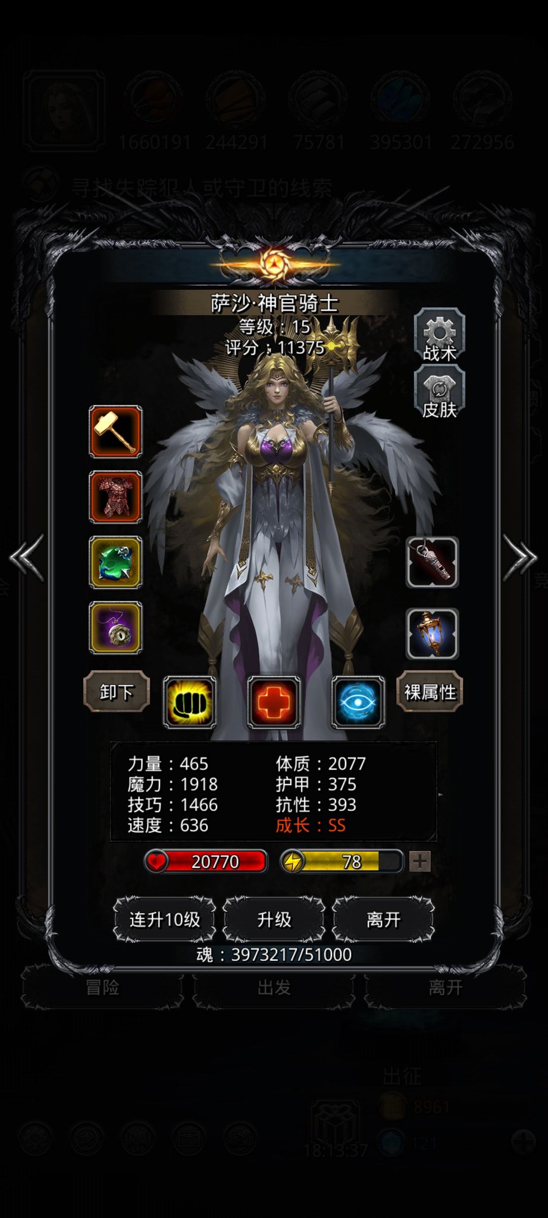 神官:2000魔 1800技 320甲