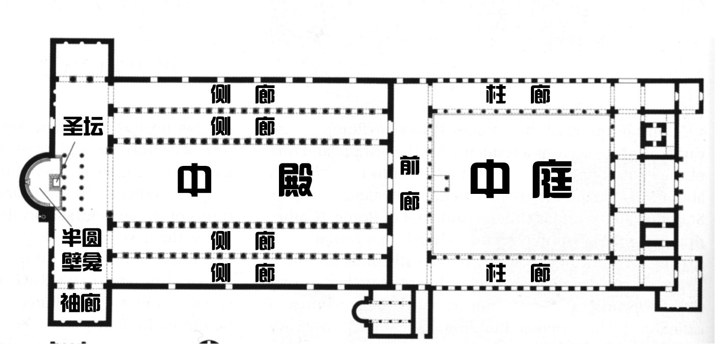 当时巴西利卡的形式还是比较简单,整体设计上也没有后来非常经典的对称布局,但中殿和侧廊,以及柱廊进行分隔的模式却基本被保留了下来。