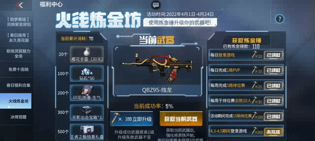 首先此次活动持续时间较长,玩家参与全部任务一共可以获得1020个炼金锤,并且在4月3号到4月5号期间登录游戏就可以获得200个炼金锤,所以各位小伙伴一定不要错过这个白嫖的机会。并且前面几级都很好升级,但是从橙色/源英雄级-英雄级升级一次就需要100个炼金锤且成功概率只有5%,也许只有少部分的幸运儿可以抓住这5%的机会升级成功,反正小编是尝试了好几个号都是没有升级成功。
