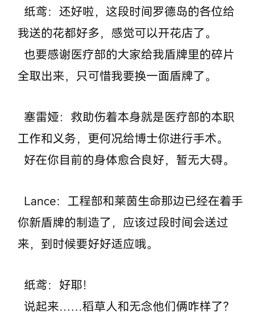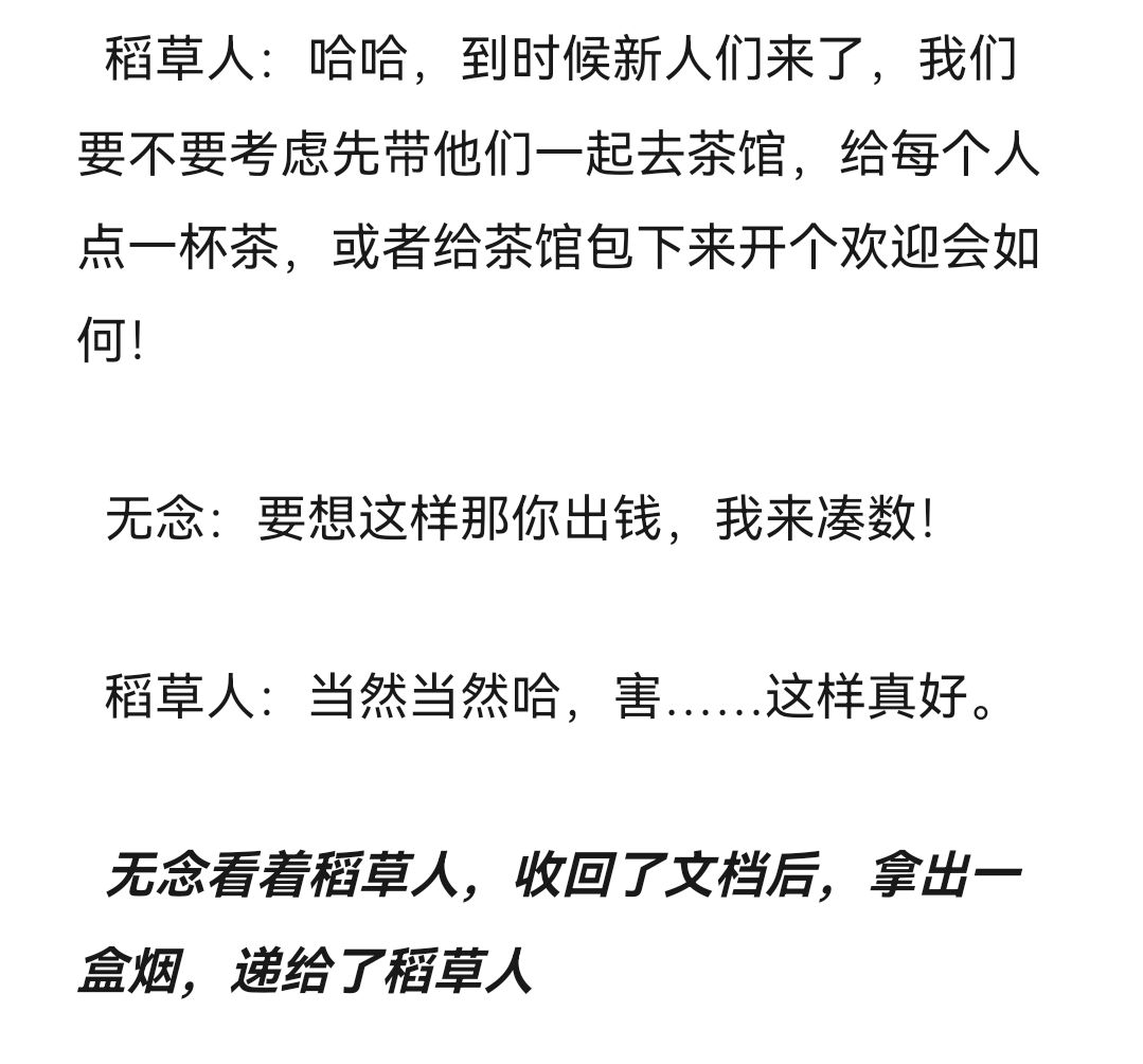 然后后续我还发现……原来大家也很喜欢这种自己身临其境成为重要角色的感觉,甚至拖更的那两个月很多人Q群要我快更新或写他的相关内容,人设制造者!