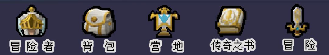 第四块界面,分别是冒险者(显示个人属性及装备信息,还有掉落的装备也存在这里而不是背包里),背包(存储游戏材料道具的地方),营地(就是有各种建筑让你花材料升级每段固定时间生产资源,资源生产很少,除了商会主城,锻造工厂,其它的用处不大),传奇之书(消耗领悟之石提升属性,优先级没领域技能高),冒险(选冒险地图)。