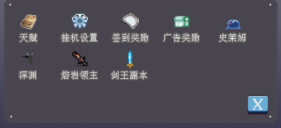 进阶系统里前期只有天赋系统,挂机设置,签到奖励,广告奖励是用的到的,史莱姆就是打桩测试伤害,深渊可以打(个人建议1000再打),熔岩领主,和剑王是两个1000级的副本。