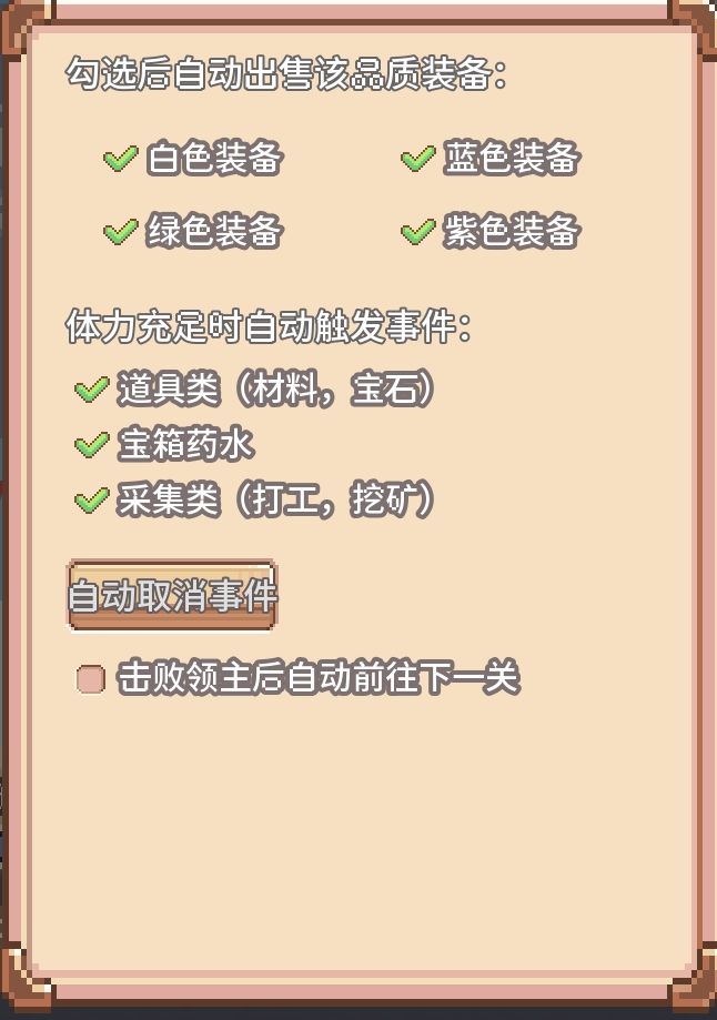 最后开始挂机,在进阶系统里的挂机设置把下面的勾起来