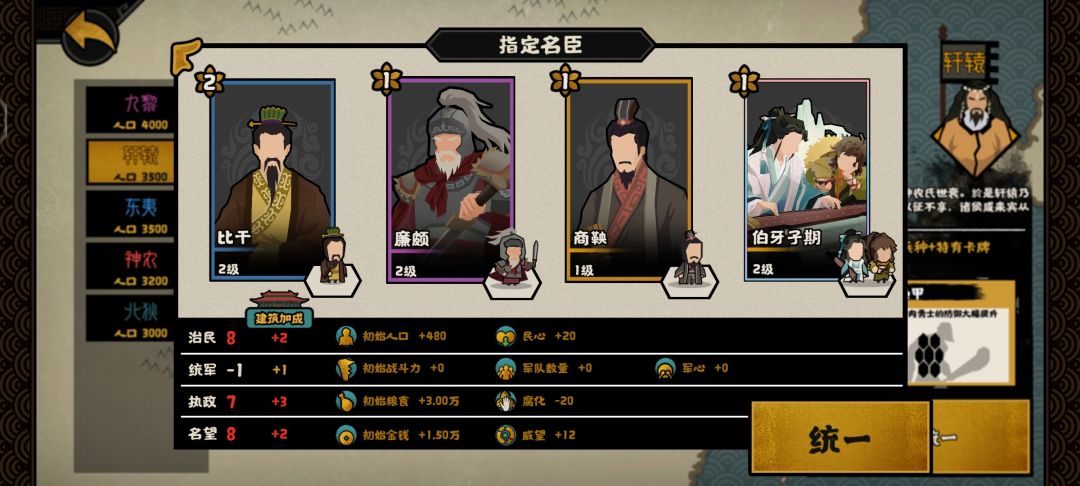 首先四个名臣的选择。