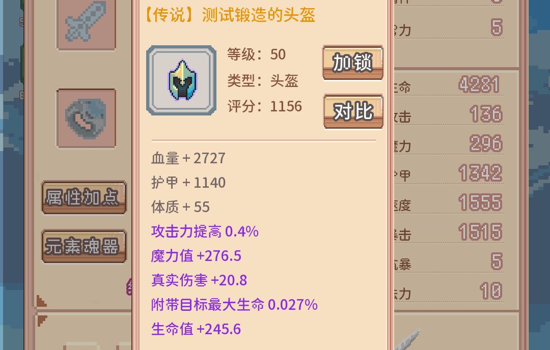 元素伤害是我最难理解的一个,好像是上个版本的产物,现在版本的伤害数值占比不大,不知道有没有属性克制的关系,不知道怪物存不存在元素抗性以及护甲抵消的成分,测试中15点木元素对1护甲史莱姆对应130点伤害,再次增加貌似有克制关系的15点雷元素,元素伤害增长到261,有可能是每15点元素对应130.5的元素伤害。