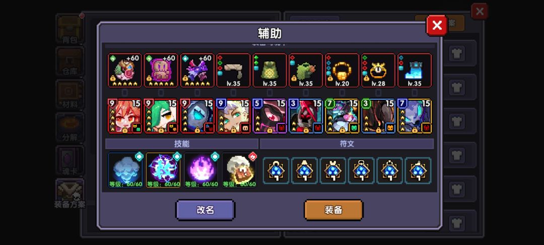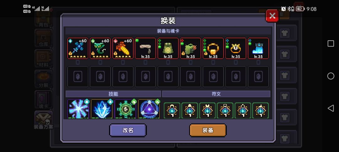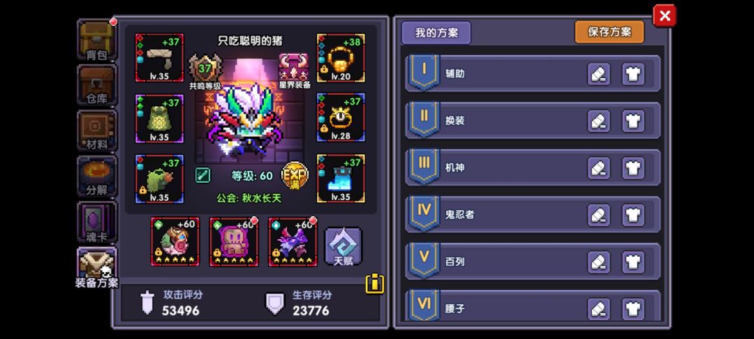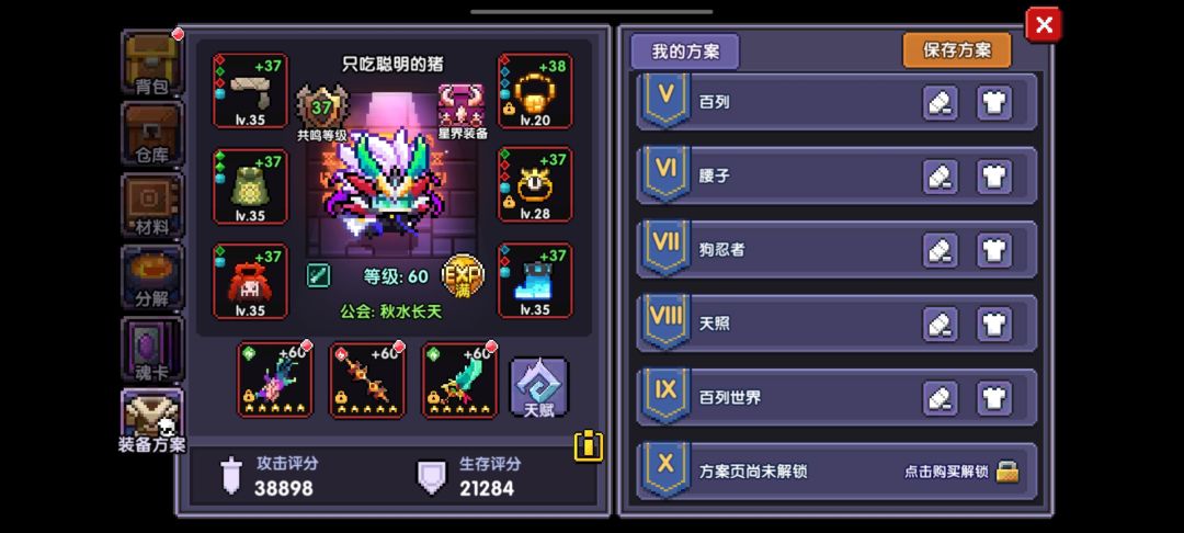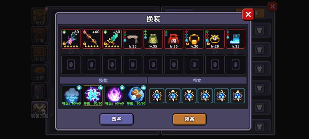 一个方案由装备 武器 大符文 魂卡 技能 宝石 宝石共鸣组成。所以其实大部分的东西都可以通过这个方案一键换装,实现高效便捷舒服的更换bd。
