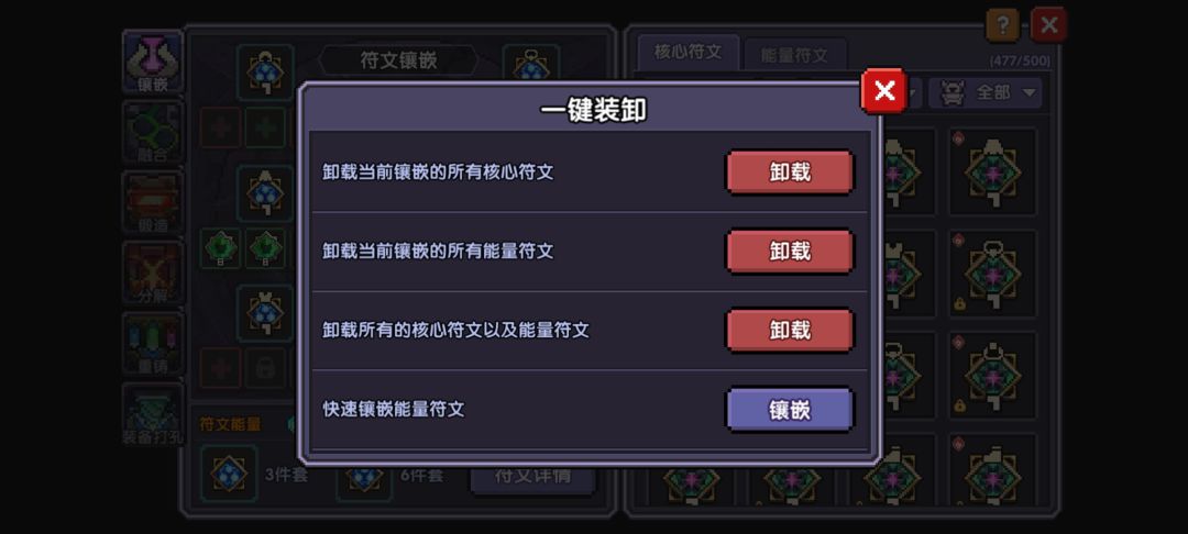 有时候我们总是找不到能量符文,我们所以最好在切换方案前,点符文的全部卸载,然后切换换装方案去,再切换职业。这样就不会出错了,装的时候一建装上,不过要注意,他这个由于能量符文等级问题会出错,比如,攻强装到项链上,脚上装了高级防御符文。需要检查一下。