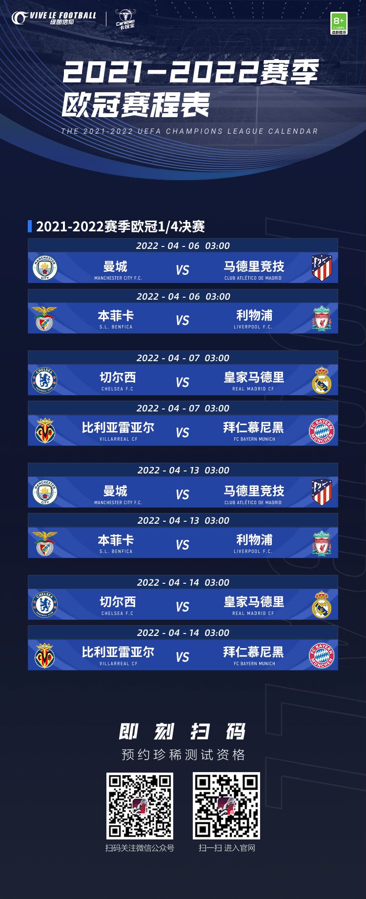 4月13日 曼城 VS马德里;本菲卡 VS 利物浦