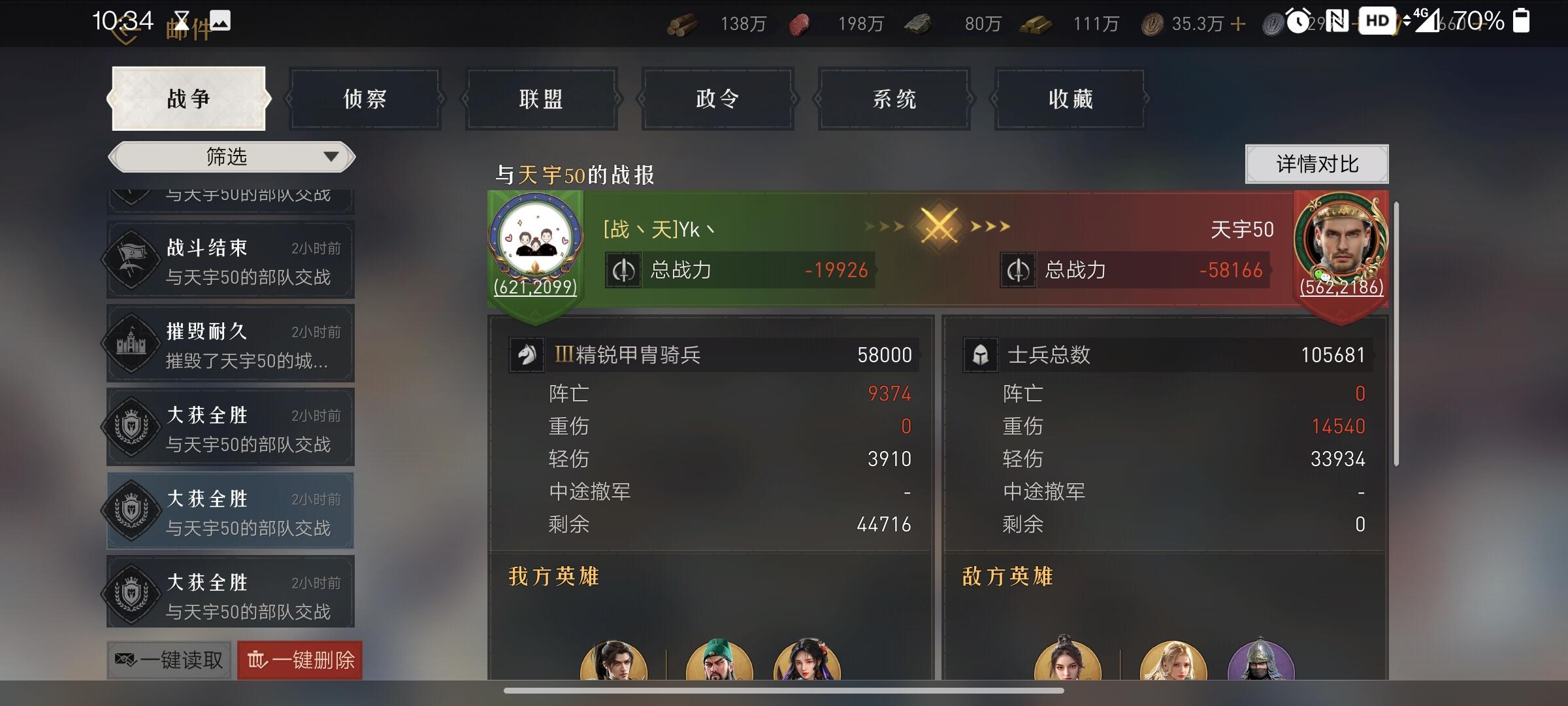 今天抢了个10级堡,阵亡了1.2万的骑兵,9千多步兵,8千多弓兵,我承认抢他之前没做好功课不知道伤亡这么大,但是这后果太严重了吧,先不说我粮食够不够,这些兵我需要10个小时才能再造出来,一天我都不用上游戏了,现在只能去下载别的游戏玩一天,玩的顺心可能就不回来了。 有的人会问你一天啥也不干就玩游戏吗,是的疫情把我封在家里了20多天了,现在哪也去不了。。。