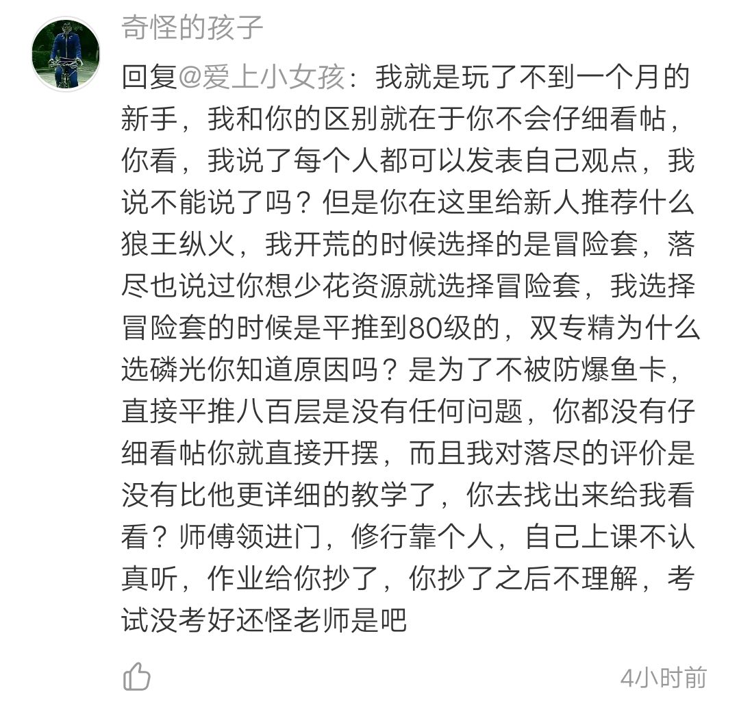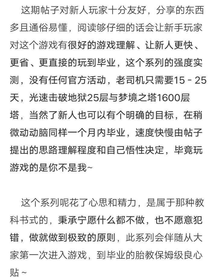而帖子描述的强度我小号实测属实,而不是小葵花理论小课堂,这个系列的初衷是帮助新人,提供一个游戏思路、装备体系推荐,在游戏里有属于自己的游戏体验。