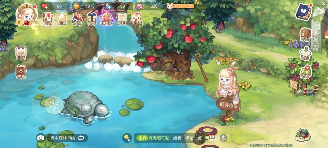 4.❗️乌龟挠痒,打落苹果❗️具体操作:点击地图,点击青木森林,在左上角,点击乌龟背帮它把杂草打掉,点击旁边苹果树把苹果打落获得物品。(如图9)