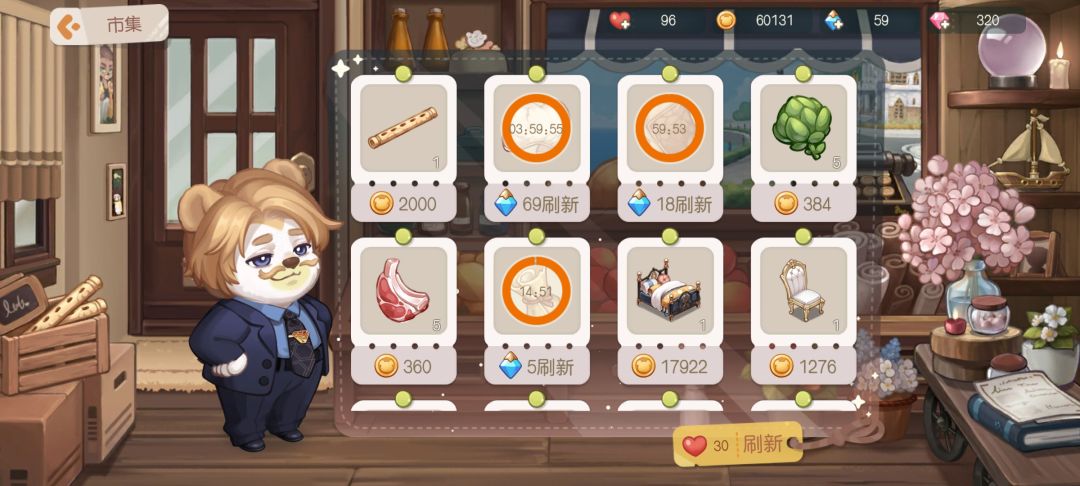 2.购买❗️市集物资❗️,具体操作:点右上角书本,再点击市集,羊皮,牛皮,鹿皮为必买品。以羊皮举例,羊皮是不可或缺的制作材料,市集300金币可购买5个,再看当天交易所羊皮价格,此时为520金币一个羊皮,把刚买到的羊皮上架即可赚取差价。(如图2)