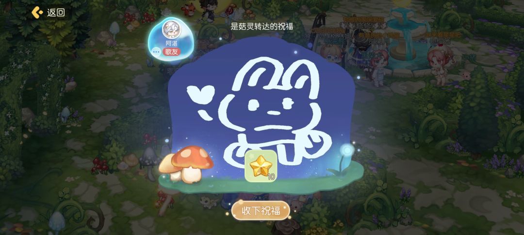 1.❗️为亲友画蘑菇并收蘑菇❗️具体操作:点击右边地图,点击友谊庄园,往下方蘑菇丛走,点击大蘑菇写祝福,点击亮蘑菇收祝福。亲友需要在友谊庄园右上角紫色树申请。(如图5)