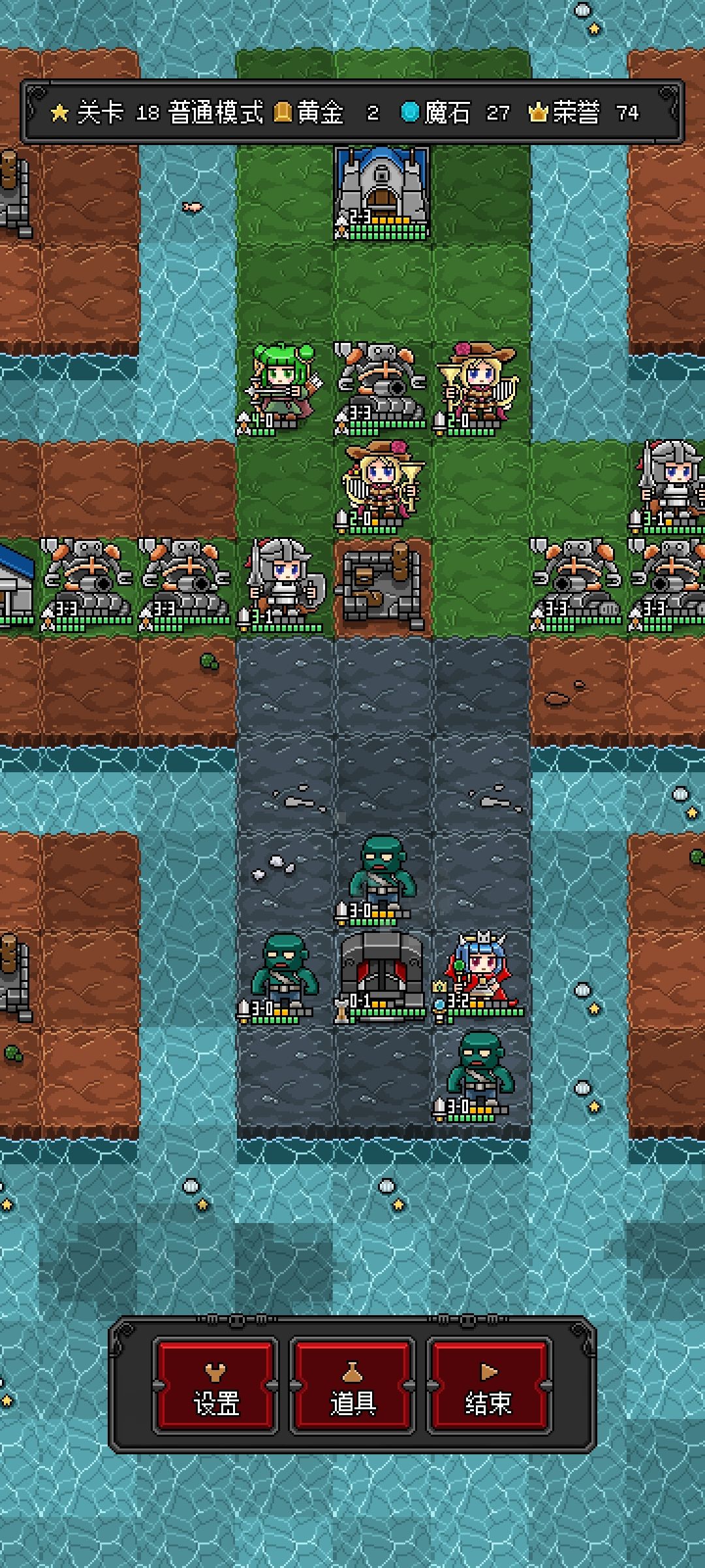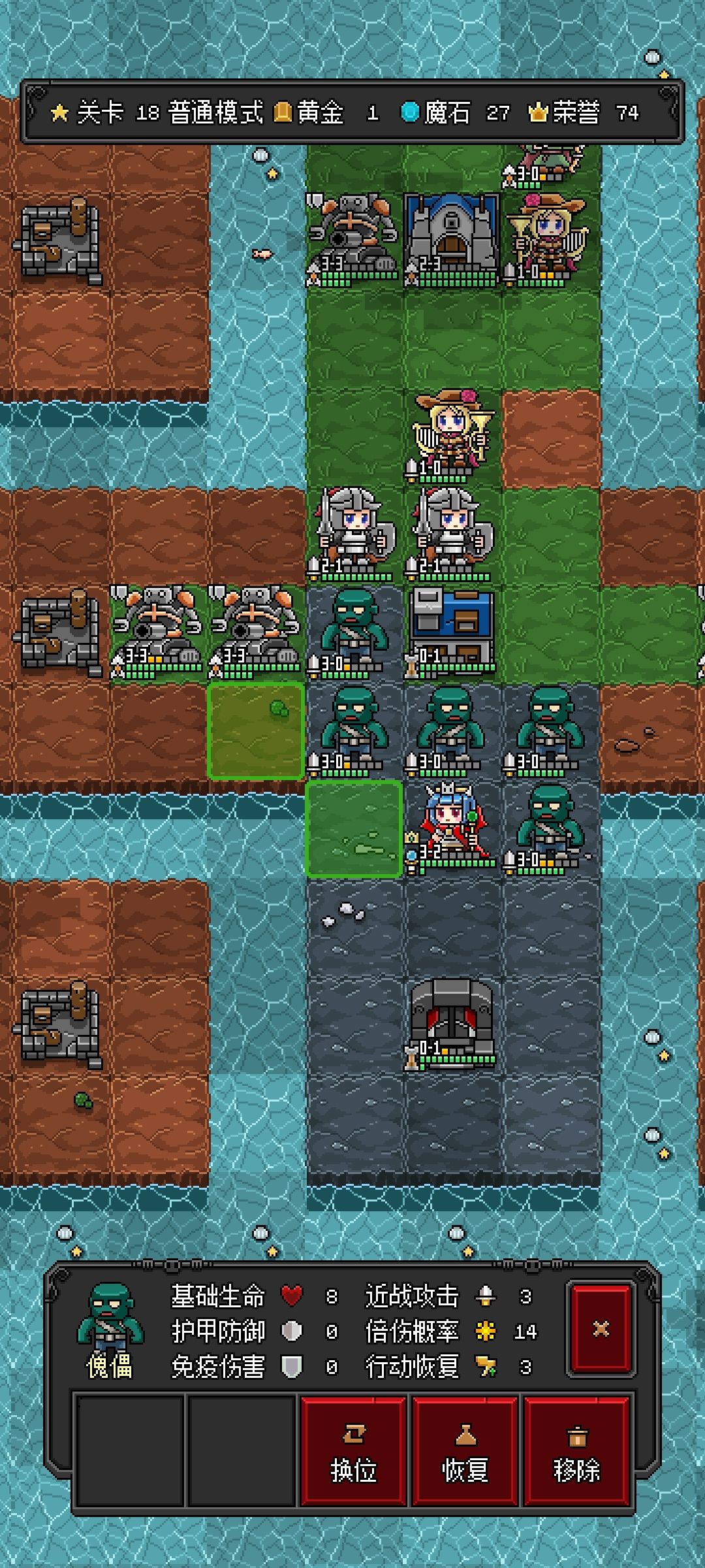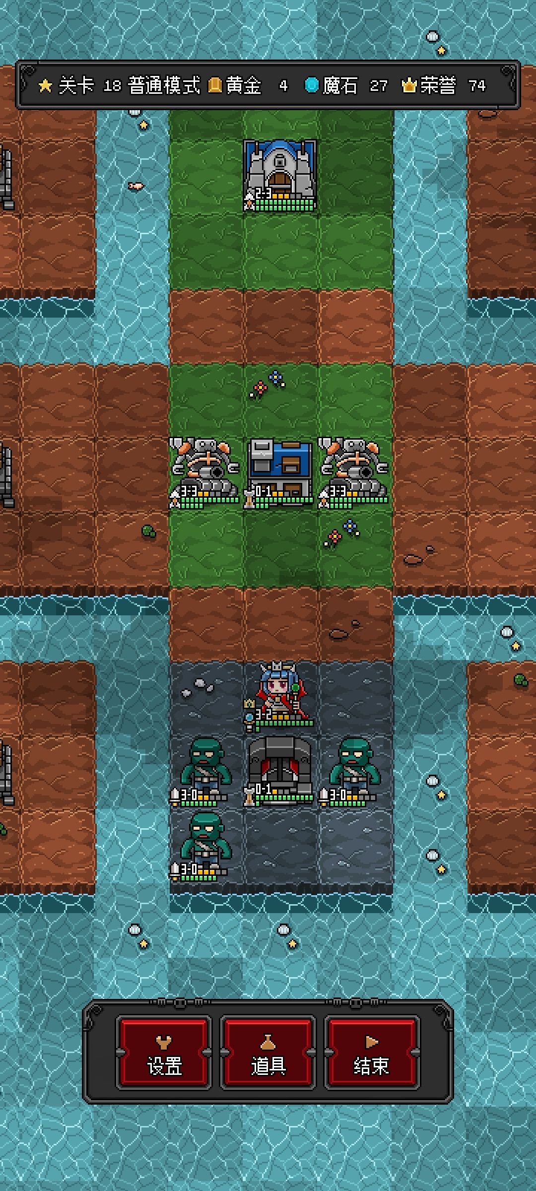 打法:开局的两个傀儡往下走一格,公主罚站。这样脱离机器人的攻击范围,机器人大概率会去两侧占点,可能有个别机器人会下来攻击公主,影响不大。开局5块可以买一个傀儡在左下或右下罚站。
