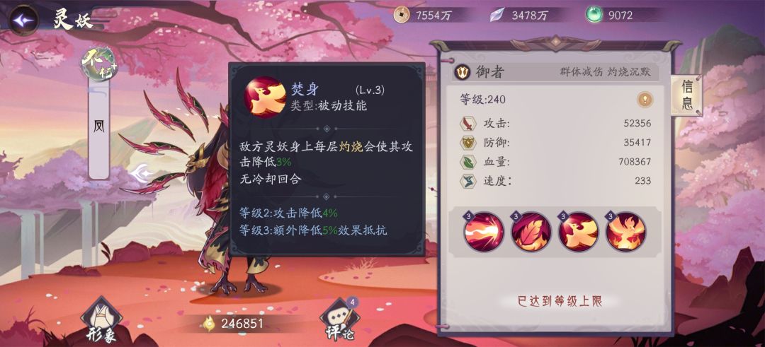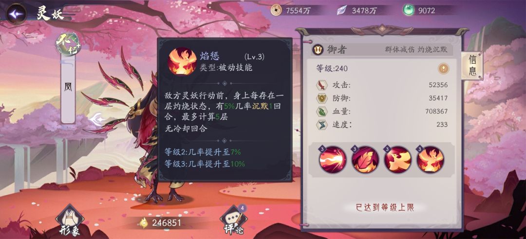 四技能被灼烧灵妖行动前有几率被沉默一回合,这个技能简直就是神技,非常值得一说,我决定另起一段。