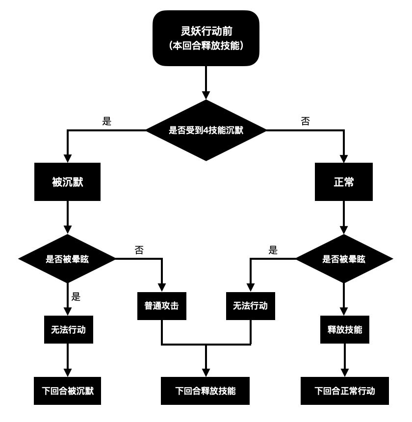 对凤的四技能来说,正常情况下,行动前被沉默一回合,行动后解除,就是打断技能释放转而普通攻击,不仔细看甚至看不到被沉默的字样。而对已经受到控制无法行动的灵妖而言呢,如被眩晕,轮到其行动时由于眩晕的效果跳过其行动,那么对于沉默一回合这个效果来说,因为并未行动因此无法解除沉默状态,须等到下次行动时方能解除。