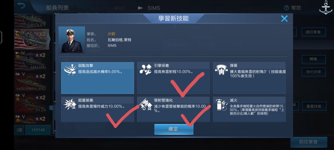 除了航母基本都先点破釜沉舟,战列舰可以先点神射手。然后防空强的,其中特别是带aa的船可以点个防空,副炮强的点个副炮,这两个不是必须,看你什么船,有的要点一个有的两个都不要,然后再点高速瞄准;航空母舰就只需要点一个防空,然后看你心情好可以点副炮