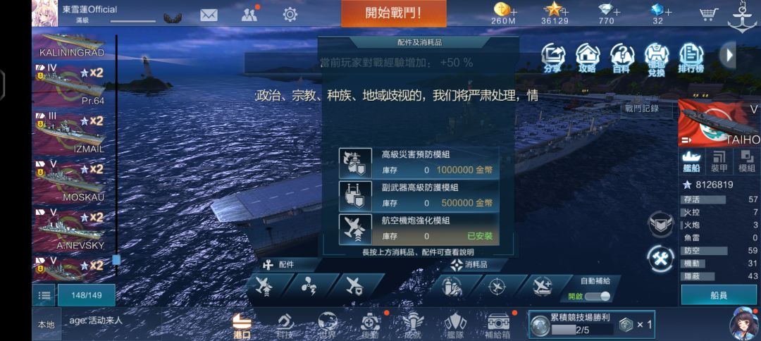 先说第一个配件槽,一般来说对于巡洋舰,和驱逐舰,都是选择主武器防护,而战列舰一般选择灾害预防,航空母舰无条件选择机炮加强。巡洋舰和驱逐舰的损管cd很快,不怎么吃灾害伤害,但是武器往往缺乏有效装甲保护;而战列舰的主武器一般都具有全舰最厚重的装甲保护,并且战列舰的损管cd长,一般来说会经常吃到灾害伤害;航母的话,选择机炮加强能极大程度的提升自己的战斗机空战实力。