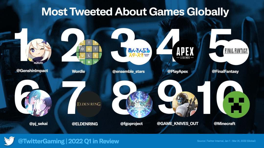 Twitter发布Q1十大热门游戏:《原神》第一《艾尔登法环》第七