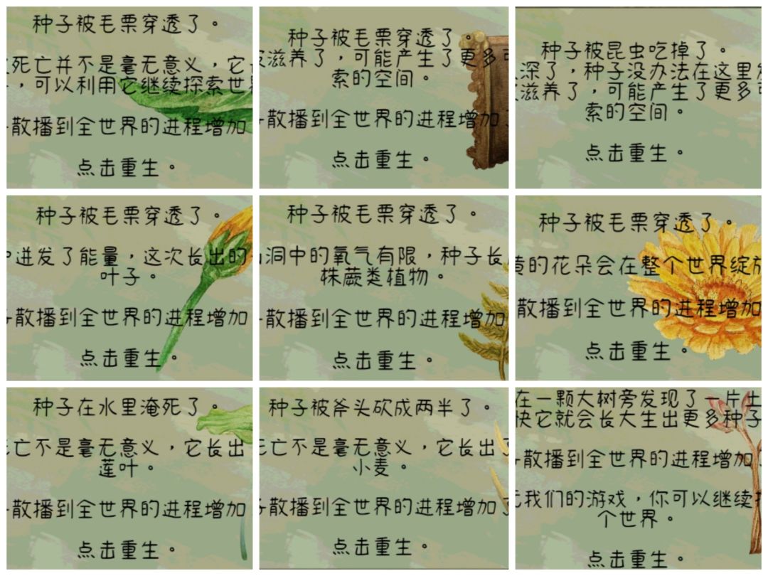 植物的种类感觉有一丢丢少,可以再多加一些,然后感觉可开发的新场景有很多,比如岔路口左边,终点大石头后面,向日葵旁边石壁上,开头往左走或许也可以设一个成就点,这样很多人可能会一开始直接忽略掉哈哈哈哈哈
